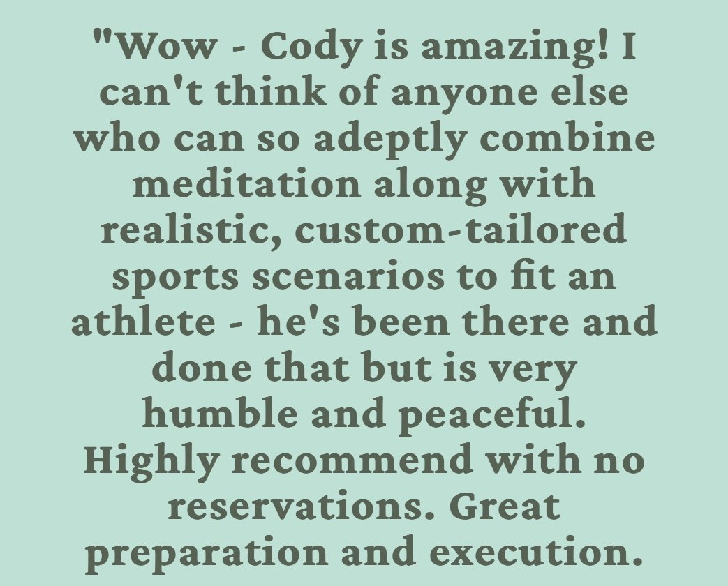 Cody first found flow, yoga, and holistic health through basketball and personal intrigue. Such interest bloomed when stumbling upon Phil Jackson’s “Sacred Hoops”, and George Mumford’s “The Mindful Athlete”. In turn, Cody completed a 200 Yoga Teacher Training at Evolution PT & Yoga in 2020, giving him the training, insights, and tools to develop his meditation and visualization program. Read Cody’s full bio here.