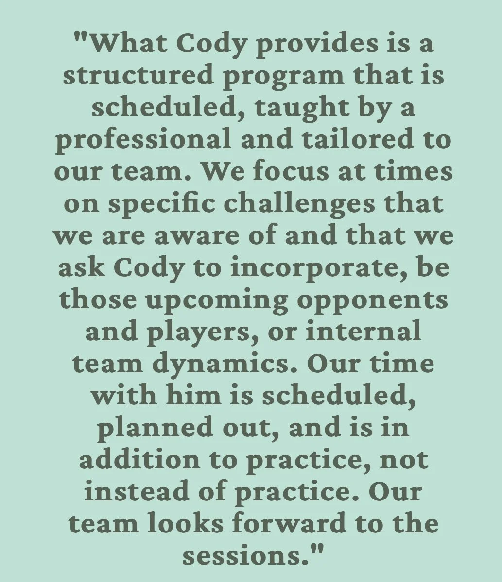 get the MVP experience straight from the source. I offer 1-on-1 MVP sessions at our office space in Burlington, VT. In addition, I offer film breakdown sessions to provide detailed info and support on how to enhance your game. Or get the full team together for a full squad MVP session in-person. Consultations available as well. Fall deep into the immersive MVP experience and feel the potency of the practice. Email Cody at cjoquattro@gmail.com for full team inquiries or consultations.